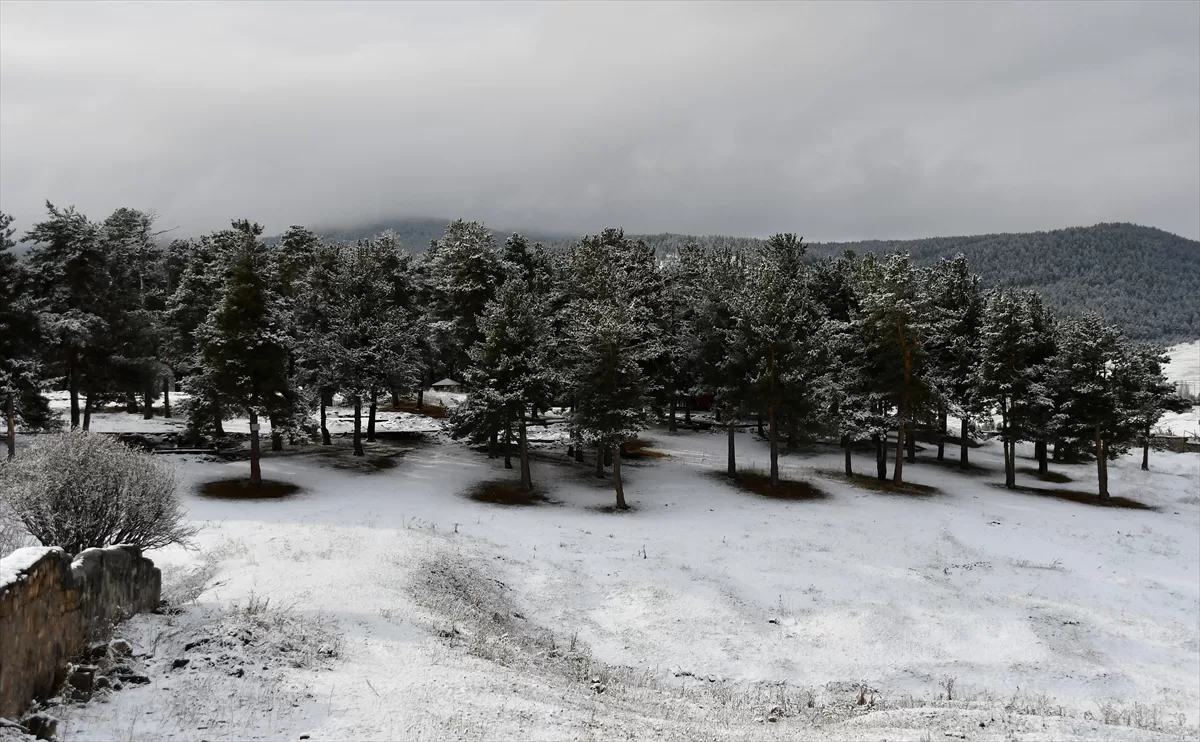 Kars'ın Sarıkamış ilçesinde gece başlayan ve aralıklarla devam eden kar yağışıyla sarıçam ormanları beyaza büründü.