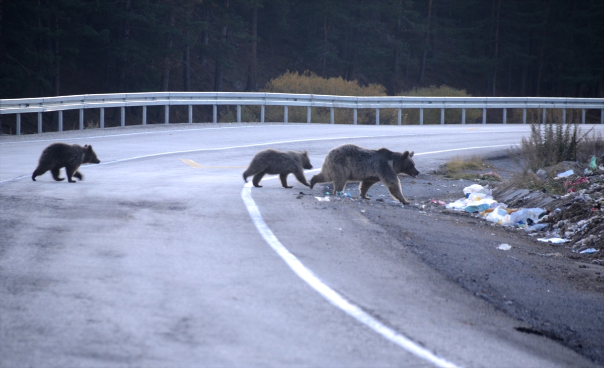 Orman içinden gelen ayılar, önce kara yolunu, ardından demir yolunu geçerek çöplüğe ulaşıyor. Burada buldukları yiyeceklerle beslenen ayılar tekrar ormanlık alana dönüyor.