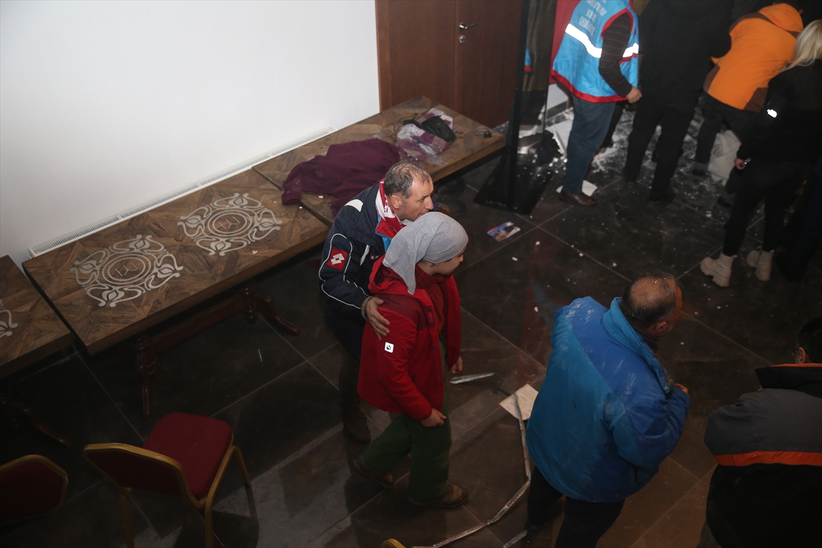 Oteldeki kalabalığın ekiplerin koordinesinde boşaltılmasına başlandı.