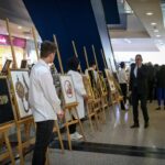 Katılımcılar, öğrencilerle sohbet ederek eserleri inceledi.