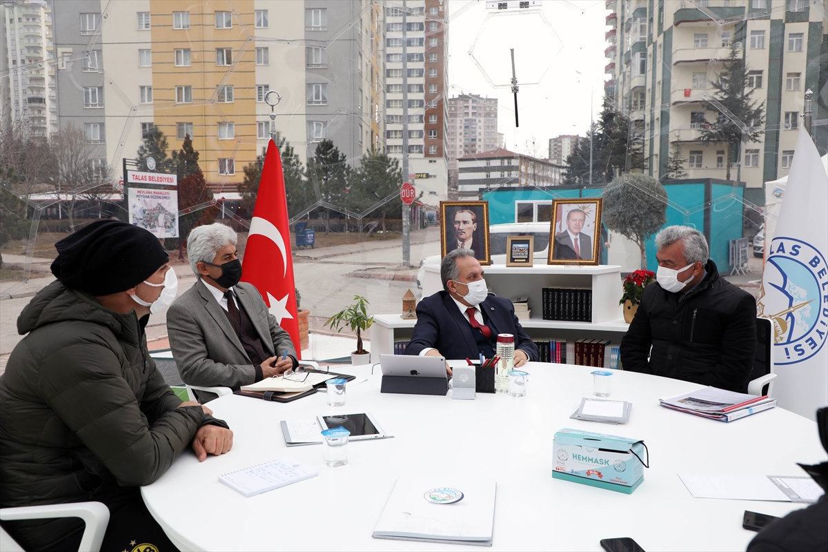 KAYSERİ (AA) – Kayseri'nin Talas ilçesi Belediye Başkanı Mustafa Yalçın, yeni uygulama ile Mevlana Mahallesi'ne kurulan şeffaf odada vatandaşlarla birebir görüştü.