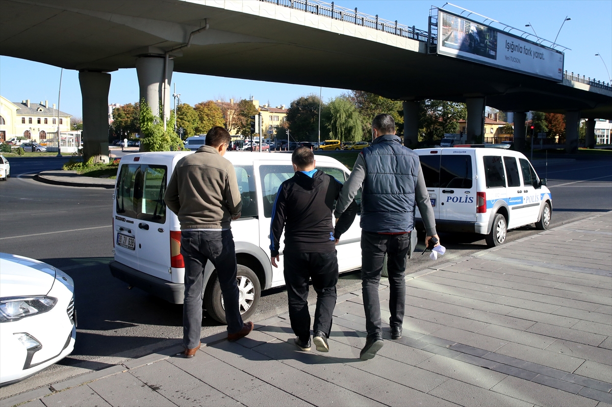 Kayseri Emniyet Müdürlüğü ekiplerince belirlenen adreste gözaltına alınan şüpheli emniyete götürüldü.