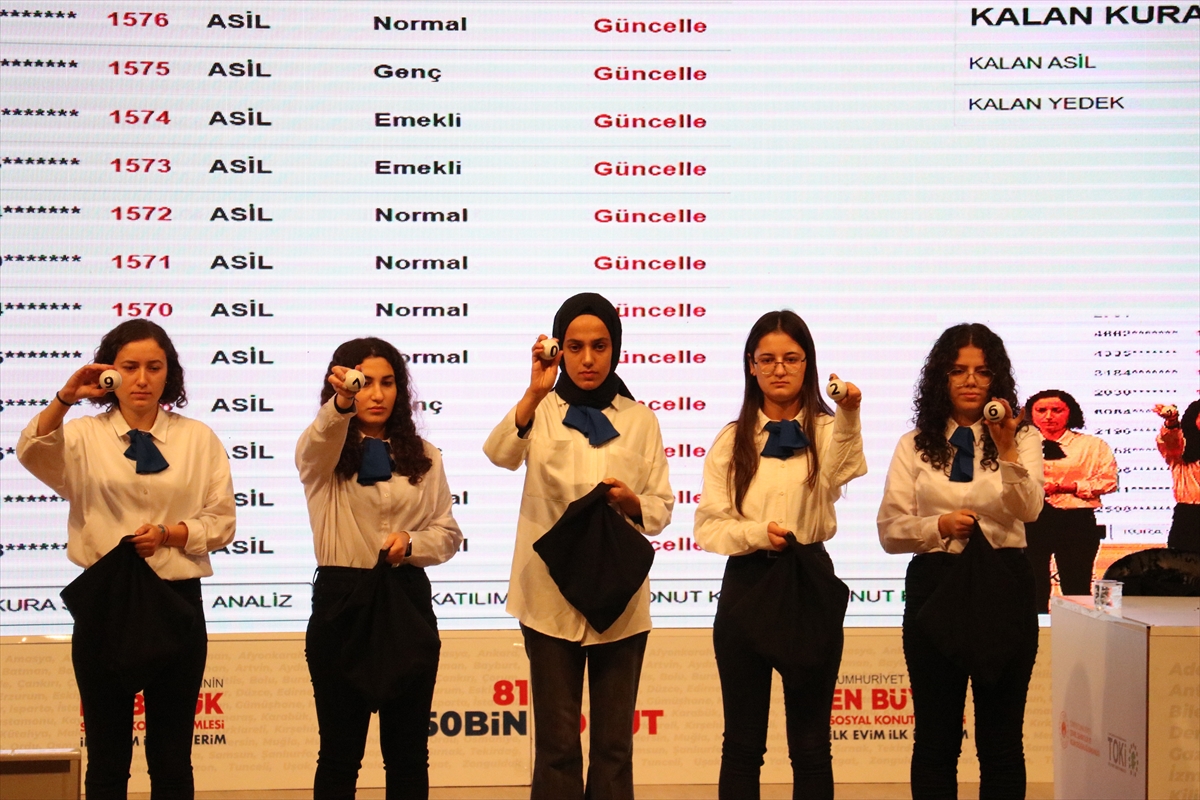 KAYSERİ (AA) – Cumhuriyet tarihinin en büyük sosyal konut hamlesi olan "İlk Evim, İlk İş Yerim Projesi" kapsamında, Kayseri'de inşa edilecek 4 bin 585 konutun hak sahipleri için kura çekimi devam ediyor.