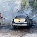 Araç sahibi M.K. de yanan otomobiline yangın tüpüyle müdahale etti.