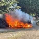 Otomobilden sıçrayan kıvılcımlar, bazı ağaçların yanmasına neden oldu.
