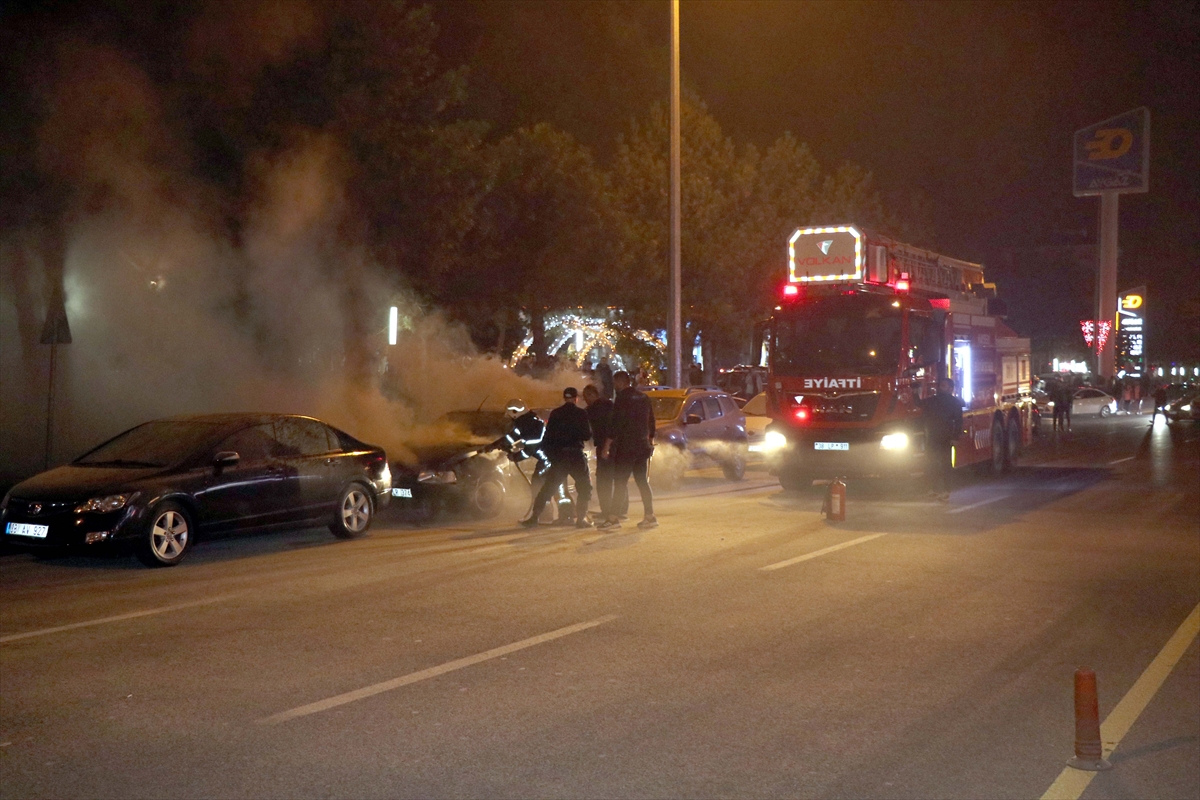 Talas İlçesi Atatürk Bulvarı üzerinde park halindeki 38 LR 374 plakalı otomobilin motor kısmında henüz belirlenemeyen nedenle yangın çıktı. Yangın kısa sürede büyüdü.