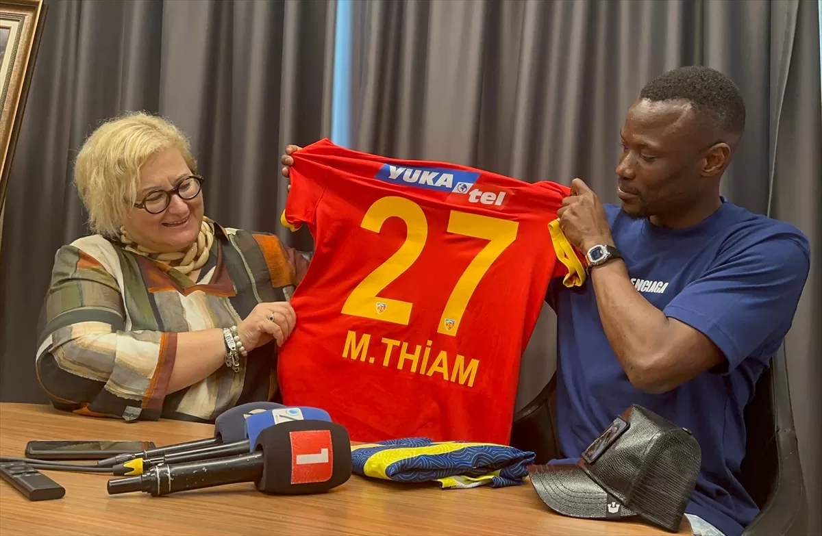 Thiam, hem Kayserispor hem de eski kulübü Fenerbahçe'de giydiği 2 formayı imzalayarak Sağman'a teslim etti.