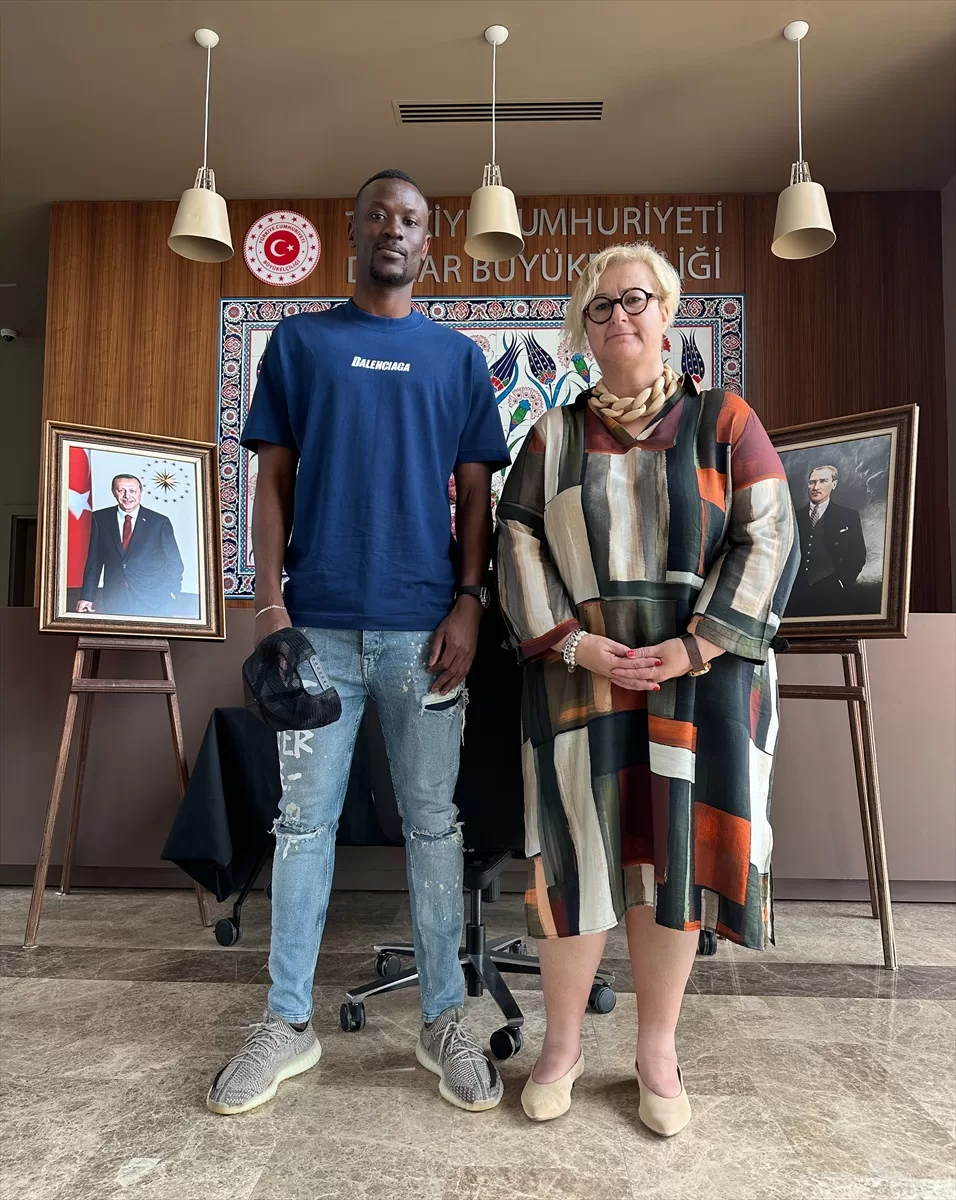Senegal Milli Takımı'nda da forma giyen Thiam, Türkiye'nin Dakar Büyükelçiliğine gelerek Kahramanmaraş merkezli depremlerde hayatını kaybedenlerin anısına açılan taziye defterini imzaladı.