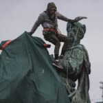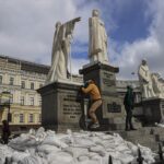 Mişenko, "Dünden beri bu heykeli kaplamaya çalışıyoruz. Ben Kiev Belediyesine eserleri korumasında gönüllü olarak destek veriyorum." diye konuştu.
