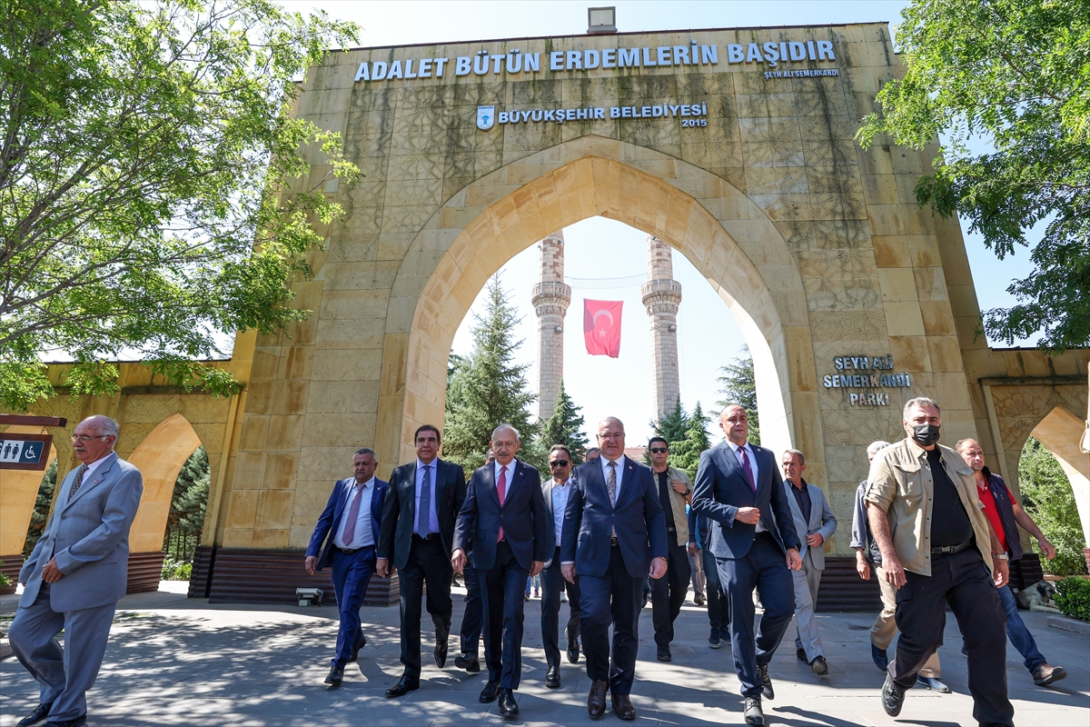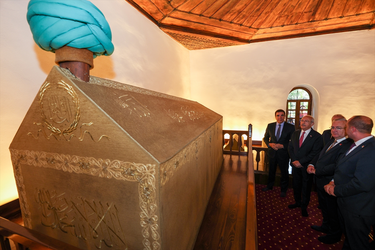 Esnafı ziyaret eden Kılıçdaroğlu, Şeyh Ali Semerkandi Türbesine giderek dua etti, yetkililerden türbe hakkında bilgi aldı.
