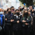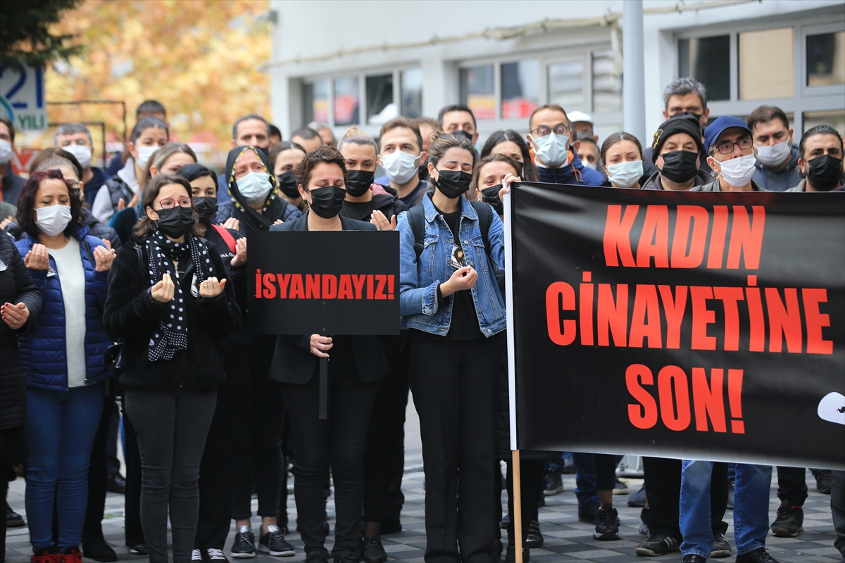 Belediye çalışanları ve vatandaşlar "Kadın cinayetine son" yazılı pankart ile "İsyandayız", "yaşamak istiyoruz" yazılı döviz taşıdı.