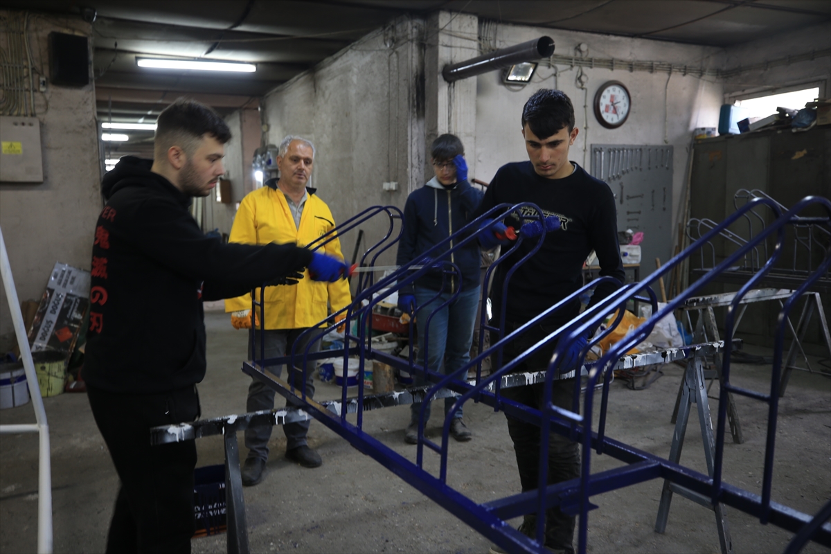 Vali Osman Bilgin'in talimatıyla Milli Eğitim Müdürlüğüne ait atölyelerde meslek lisesi öğrencileri tarafından BisParklar hazırlanıyor.