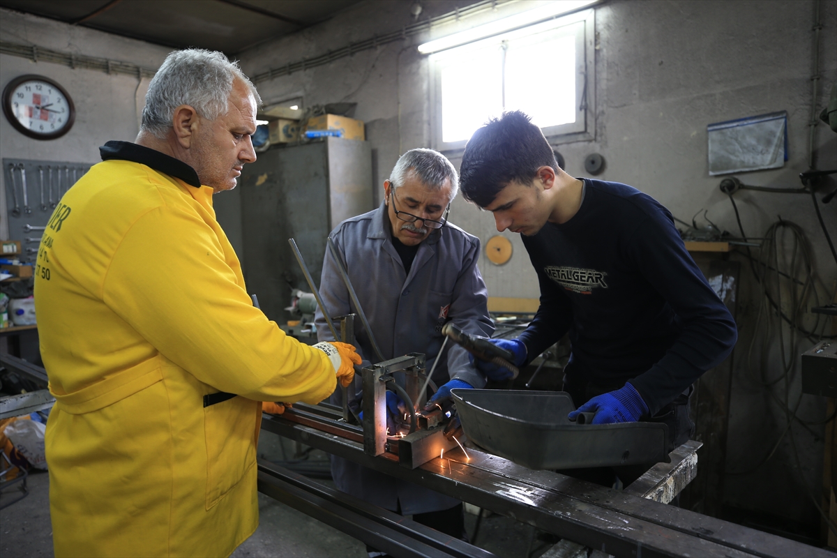 Parçalara ayrılan demirler, gerekli şekillendirmenin ardından kaynatılıyor. Hazırlanan BisParklar daha sonra boyama işleminden geçiriliyor.