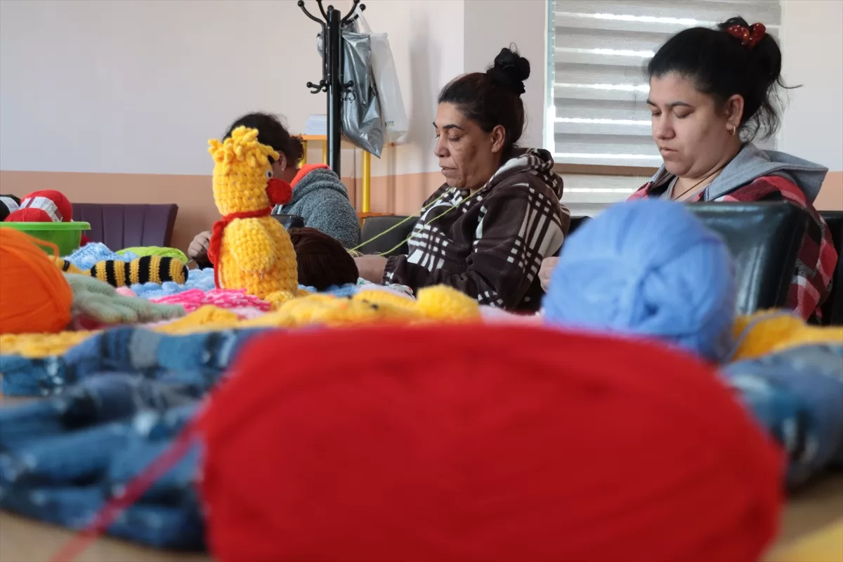 KIRKLARELİ (AA) – UFUK ERTOP – Kırklareli Valiliğince Roman kadınların iş hayatına entegre edilmesi amacıyla hizmet veren Sosyal Dayanışma Merkezi'ndeki (SODAM) kadınlar, afetzedeler için bir yandan mont, eşofman, atlet, bebek battaniyesi dikerken, diğer yandan da el işi şal ve şapka örüyor.