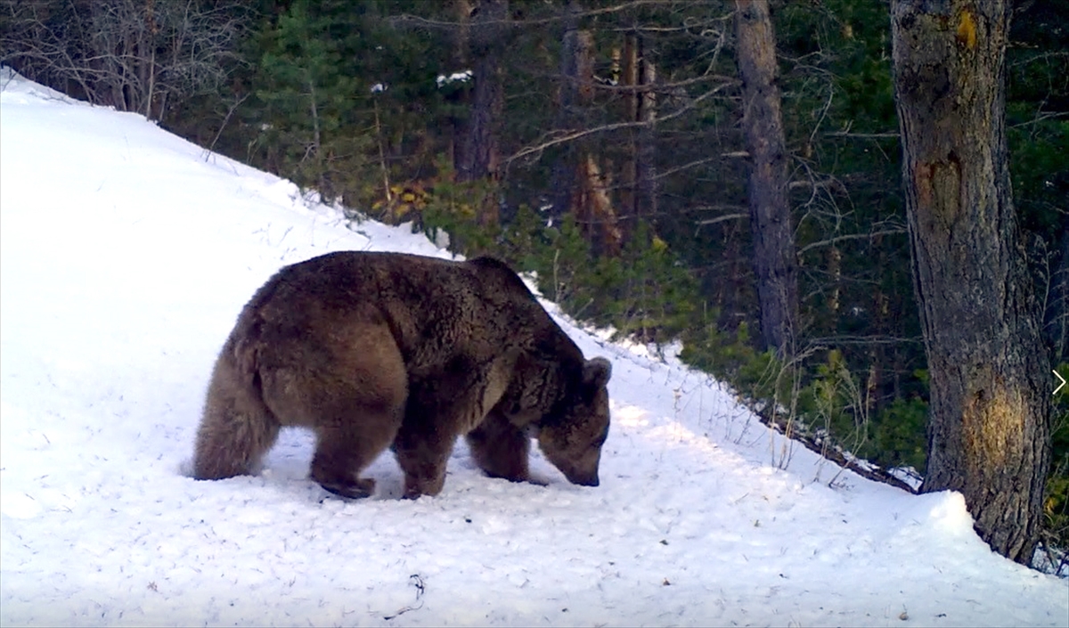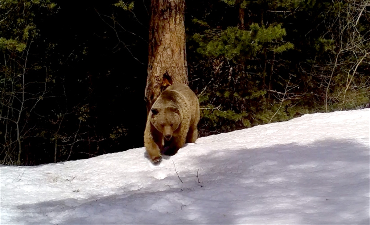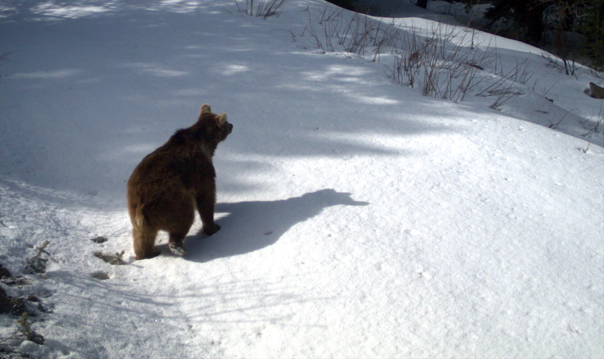 Sarıkamış ormanlarının sembolü olan bozayıların kış uykusundan uyanıp gezmeye başlaması fotokapan ve videokapanların yanı sıra kamerayla da görüntülendi.