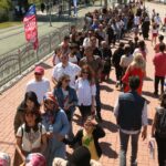 Fuara girmek isteyenler, üst geçitler ile yazarların imza stantlarının önünde uzun kuyruklar oluşturdu.