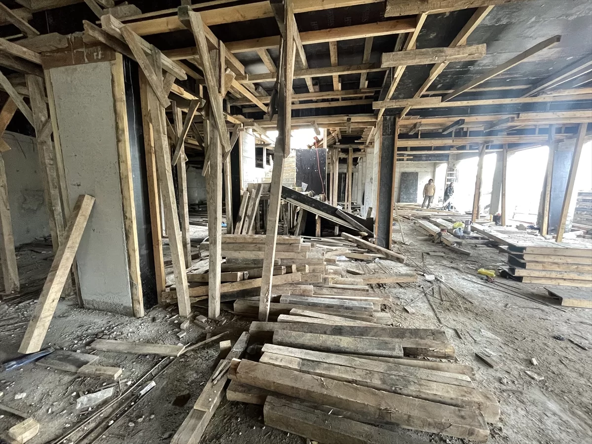 Öte yandan Şengül, toprakla doldurulan inşaat temelindeki kirişlerin üzenine beton dökülmesini cep telefonu kamerasıyla kaydetti.