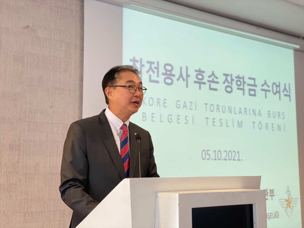 Büyükelçi Lee, "Eğitim yardımı alan Kore gazilerinin torunlarının, ileride Kore-Türkiye arasındaki ilişkilerin sürekli gelişmesi için sıkı çalışmalarını temenni ediyorum." dedi.