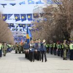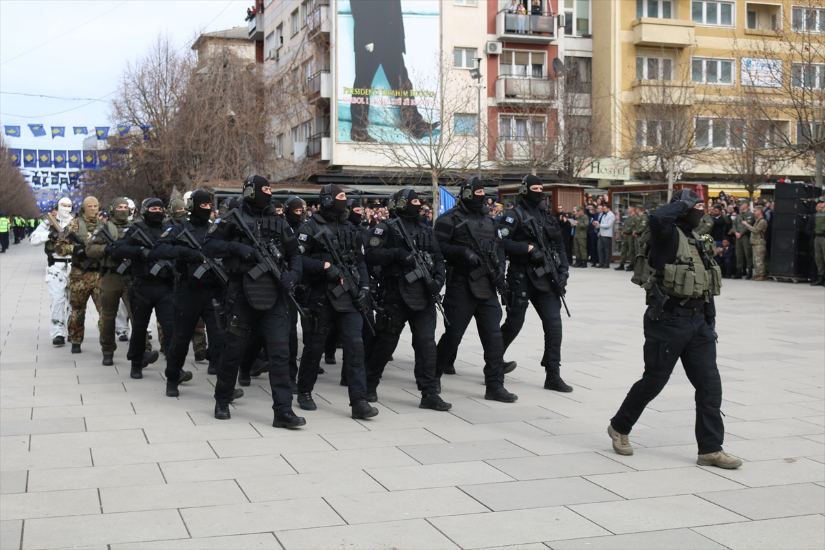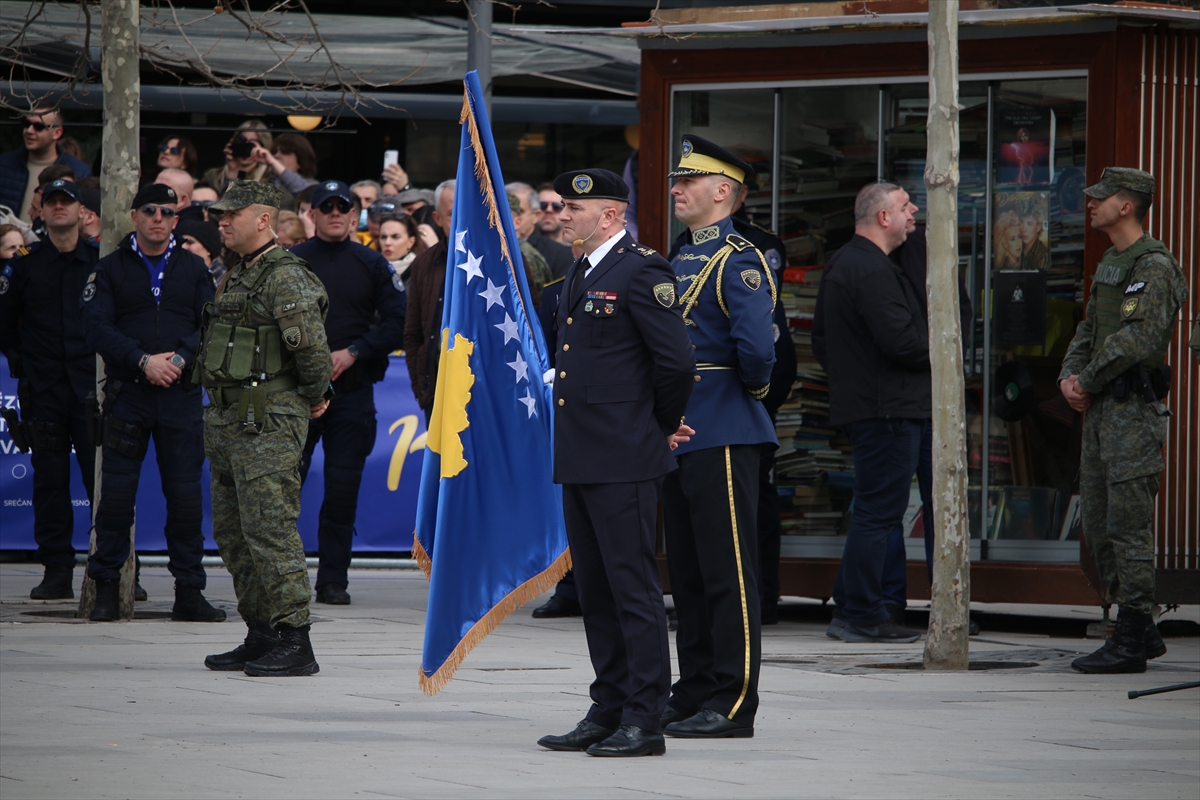 Kosova bayraklarının asıldığı meydandaki askeri geçit törenine, Kosova güvenlik güçleri katılırken, Kosova bayrağı renklerine bürünen yüzlerce vatandaş da askeri geçidi izlemek için törene iştirak etti.
