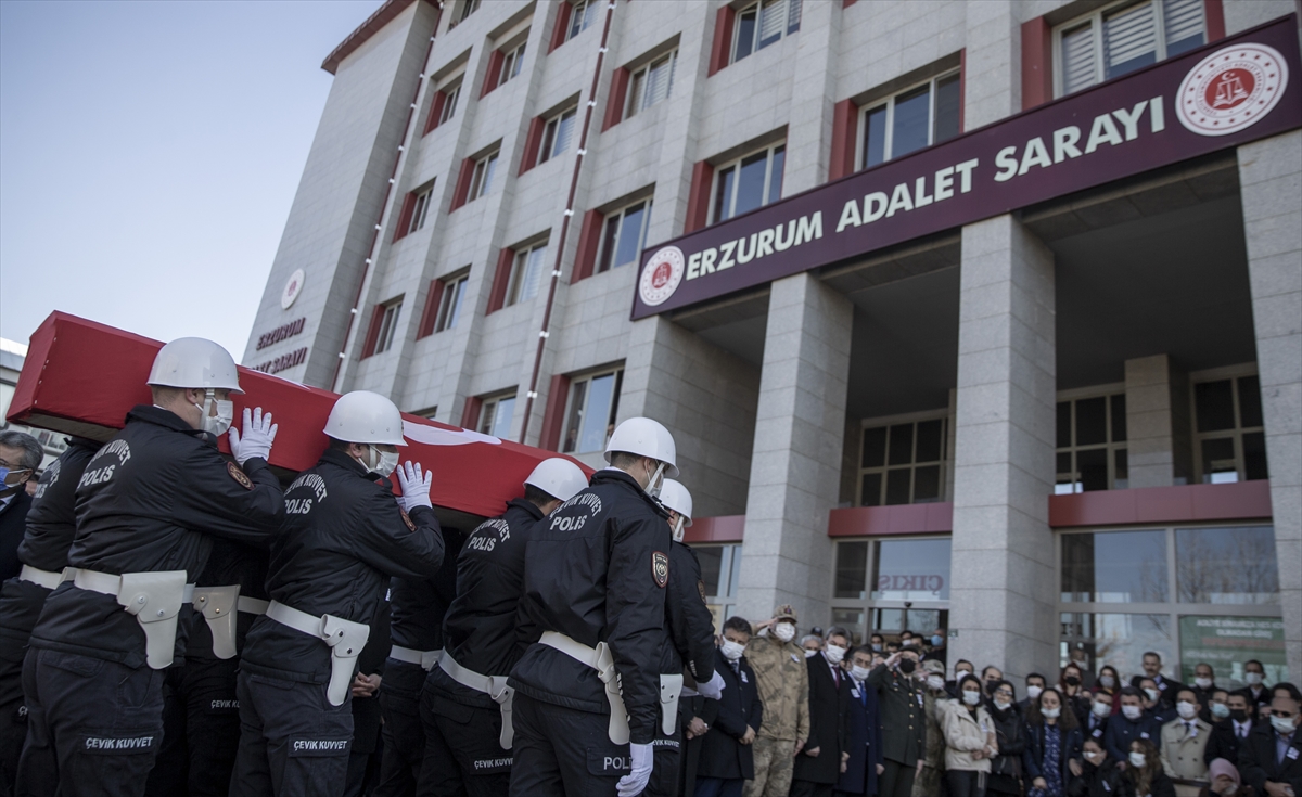 ERZURUM (AA) – Yeni tip koronavirüs (Kovid-19) nedeniyle 43 yaşında vefat eden Erzurum 1. Ağır Ceza Mahkemesi Başkanı Ümit Demirhan için adliye önünde tören düzenlendi.