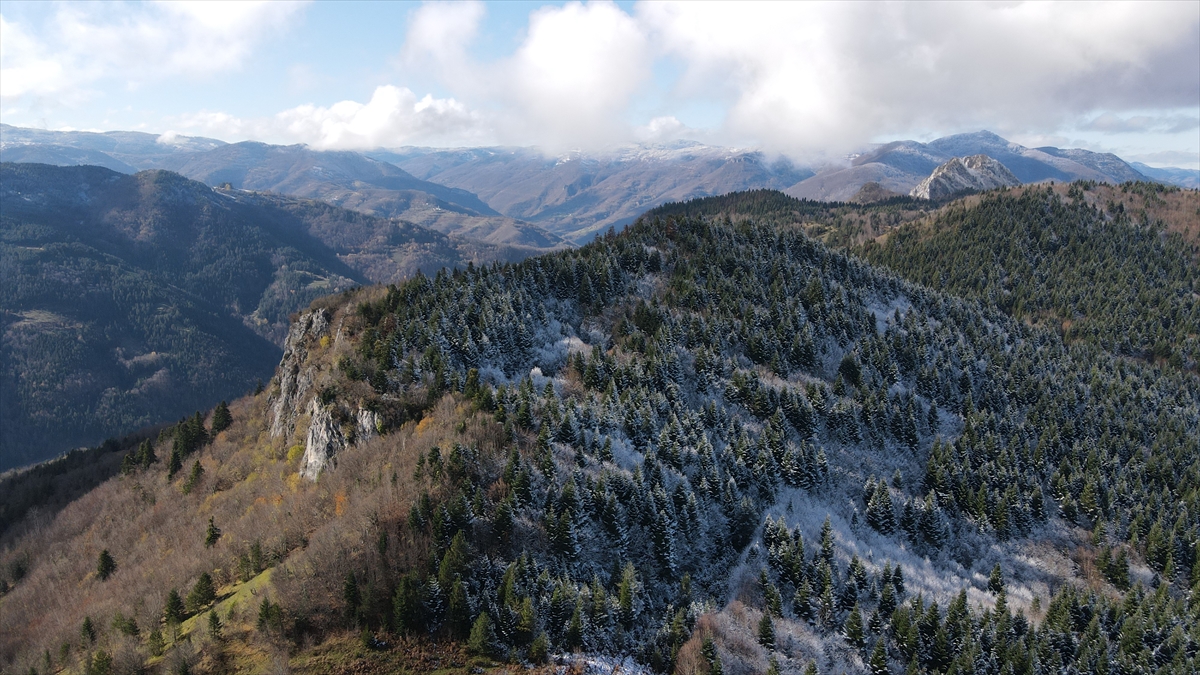 KASTAMONU (AA) – Türkiye'nin doğal güzellikleri arasında yer alan Küre Dağları, ziyaretçilerine sonbahar ve kışı aynı anda yaşatıyor.