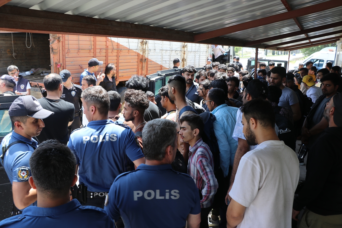 Kamyonun kasasında yapılan aramada, düzensiz göçmen olduğu belirlenen 92 yabancı uyruklu kişi bulundu.