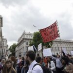 Trafalgar Meydanı'nda göstericiler adına konuşan Simon Yasmin, İngiltere'de ırkçılık ve özellikle siyahi kadınlara yönelik düşmanlığın çok önemli bir sorun olduğuna dikkati çekerek, Prens Harry'nin eşi Megan Markle'ın da maruz kaldığı ırkçı davranışların ardından bu ülkeden ayrıldığını söyledi.