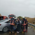 İtfaiye ekipleri otomobilde sıkışan yaralıları çıkardı.