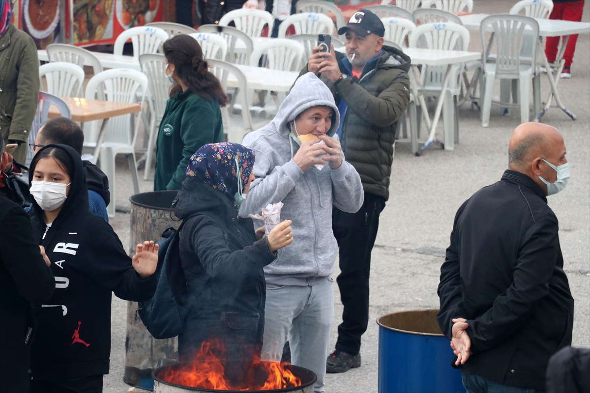 MANİSA (AA) – Manisa Trabzonspor Taraftarları Kültür Derneğince düzenlenen şenlikte vatandaşlara 1 ton hamsi ikram edildi.