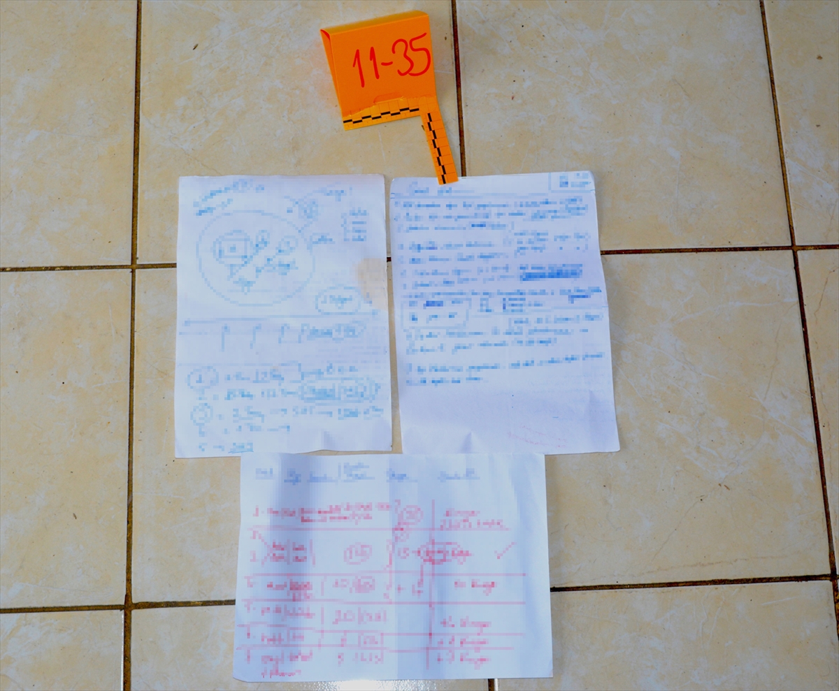Olay yeri inceleme ekipleri, darbe girişiminden yaklaşık iki hafta sonra 143. Öncel Filo Komutanlığı ek hizmet binasının koridorundaki mavi renkli valizde çok sayıda uydu görüntüsü ve el yazısı not buldu.