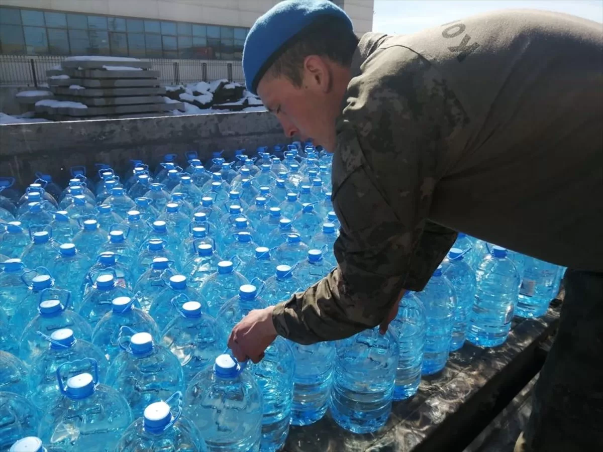 MSB'den yapılan açıklamada, Mehmetçiğin, deprem bölgesindekilerin içme suyu ihtiyacının karşılanması için bölgeye yoğun hazır su sevkiyatı yaptığı belirtildi.