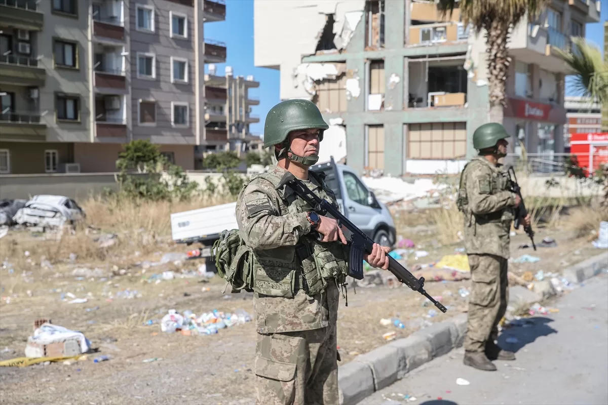 HATAY (AA) – Kahramanmaraş merkezli depremlerden etkilenen Hatay'ın İskenderun ilçesinde Mehmetçik, asayişin sağlanmasının yanında enkaz alanlarında nöbet tutmaya devam ediyor.