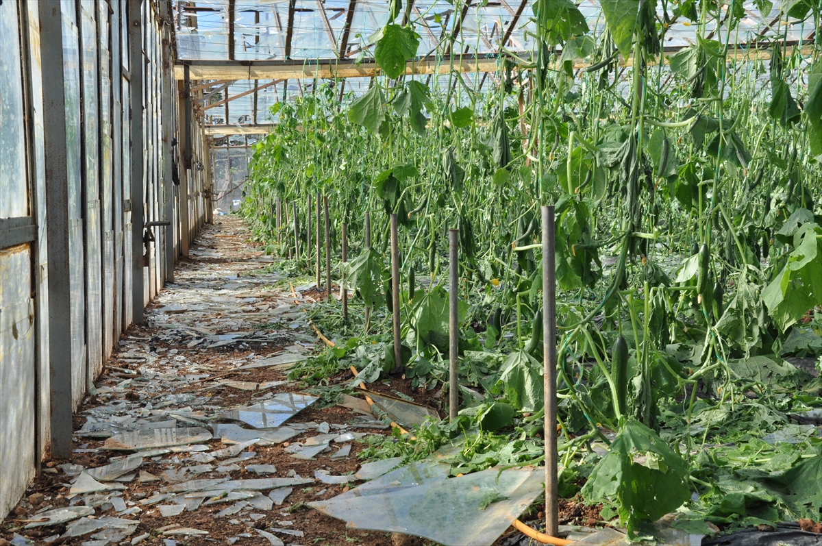 Çiftçi Fatma Örs de bir dönümlük salatalık serasında hasar oluştuğunu kaydetti.
