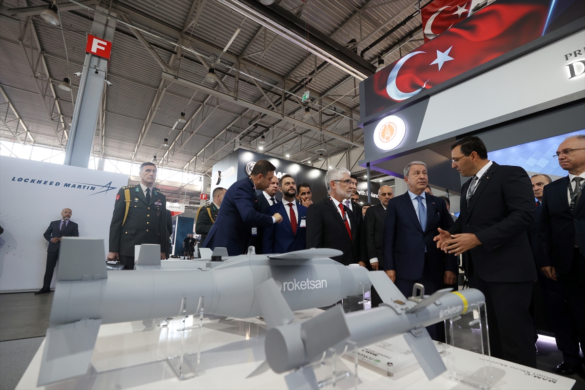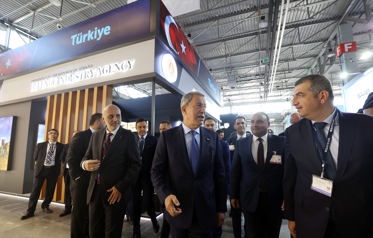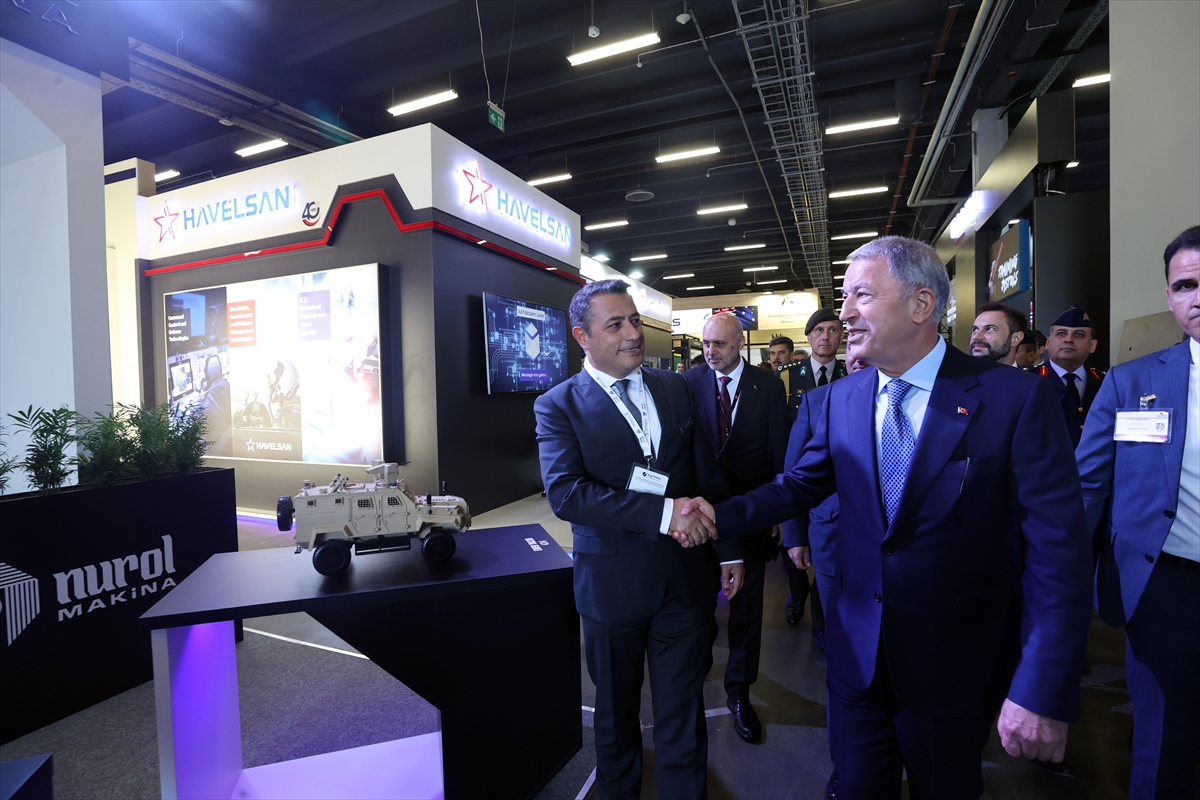 Türkiye'nin "lider ülke" olarak katıldığı MSPO'da yer alan Türk firmaların stantlarını gezen Akar, yetkililerden bilgi aldı.