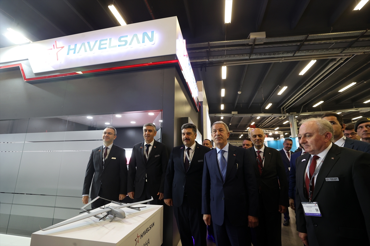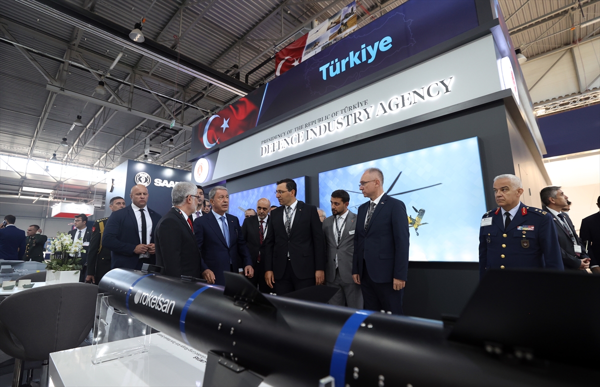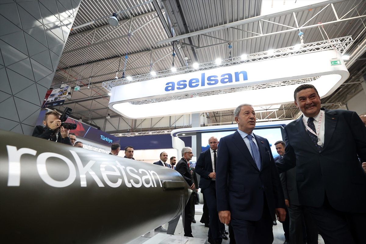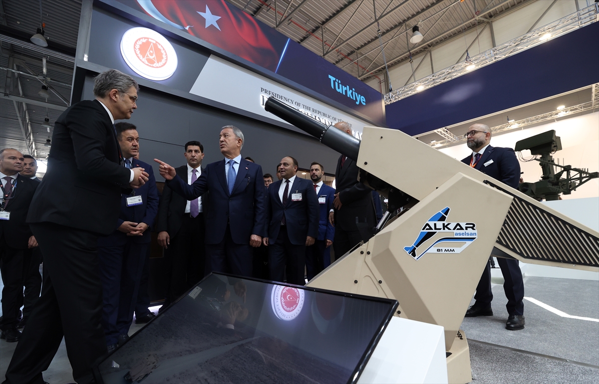 Türkiye'nin "lider ülke" olarak katıldığı MSPO'da yer alan Türk firmaların stantlarını gezen Akar, yetkililerden bilgi aldı.