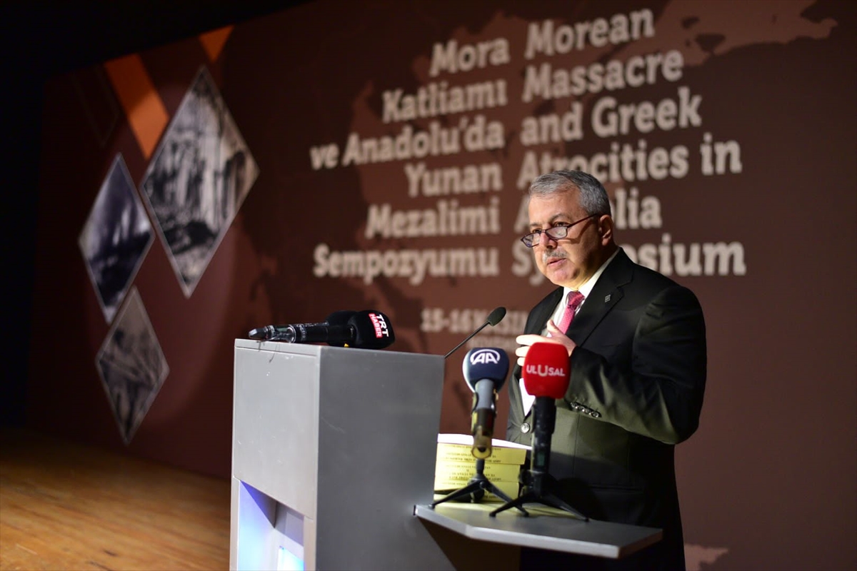 Atatürk Kültür, Dil ve Tarih Yüksek Kurumu Başkanı Prof. Dr. Muhammet Hekimoğlu da bu sempozyumu, "Mora'da Anadolu'da, Kıbrıs'ta neden Müslüman Türk'ün canına kıymak istediniz, neden bu kadar öfke ve nefret beslediniz ki yüzyıllarca Müslüman Türkler'le beraber yaşadınız? Neden 50 bini aşkın Türkü Mora'da katlettiniz?" sorularını sormak için düzenlediklerini söyledi.