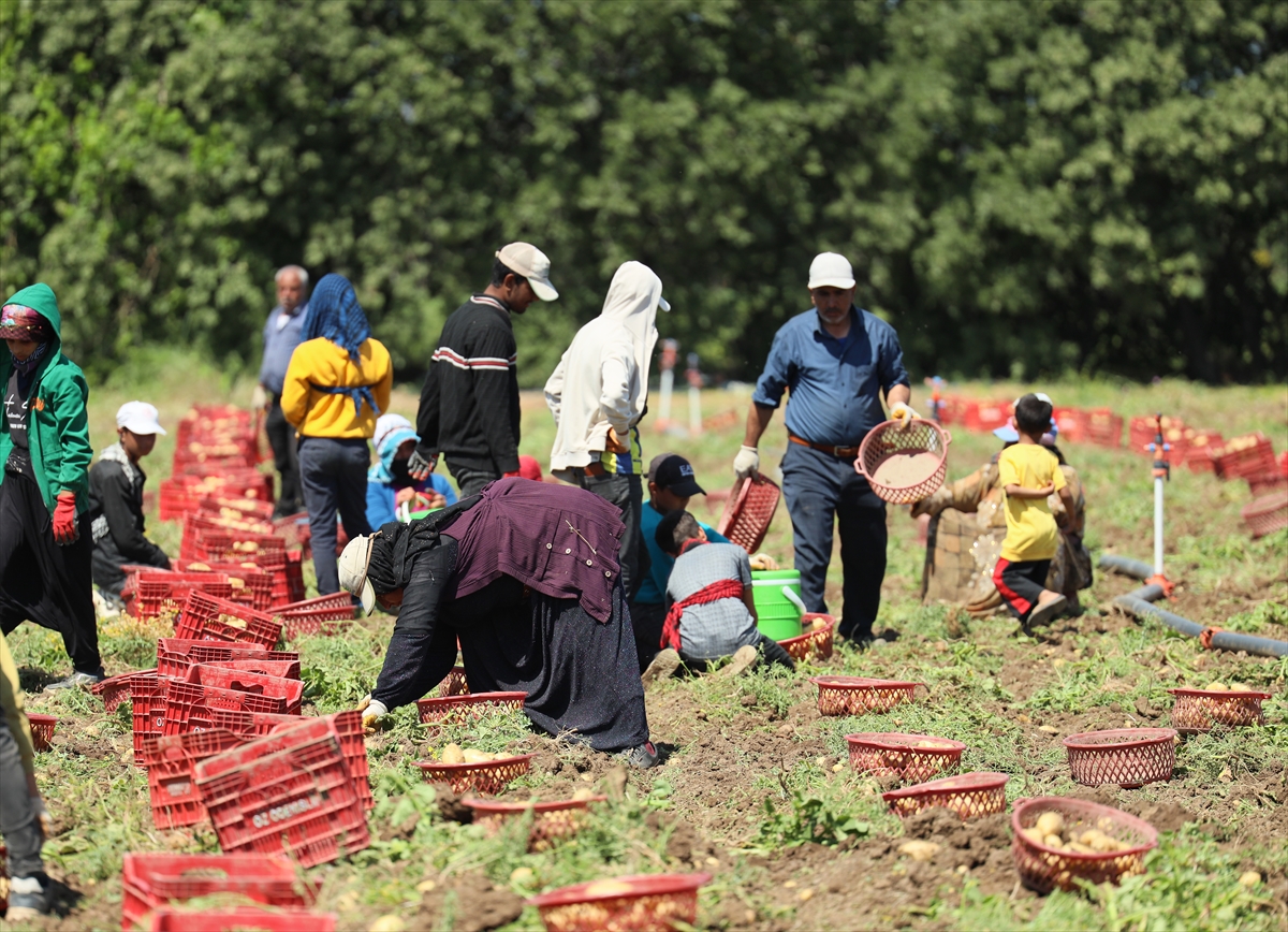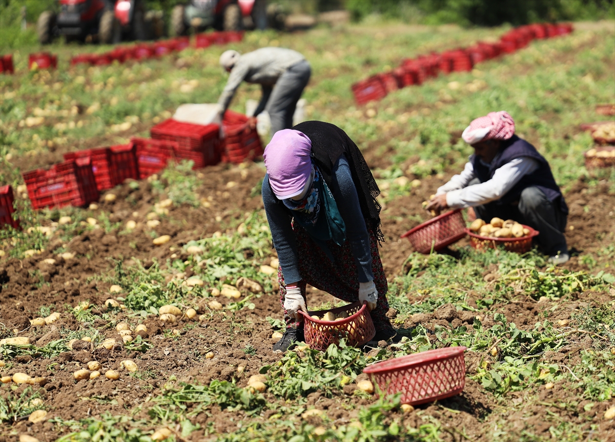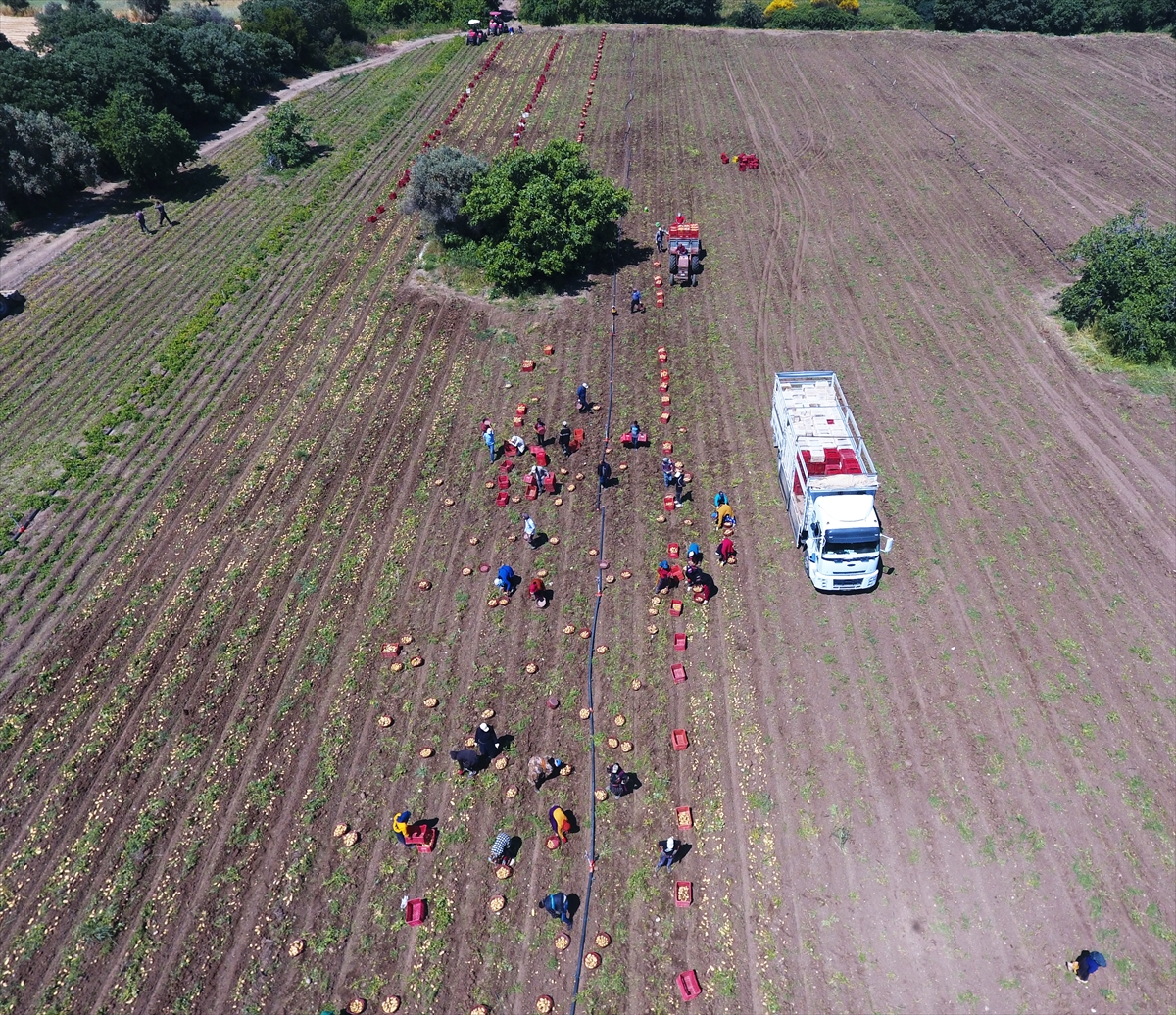 Traktör yardımıyla sökülen patatesler tarım işçileri tarafından özenle kasalanarak hallere gönderildi.