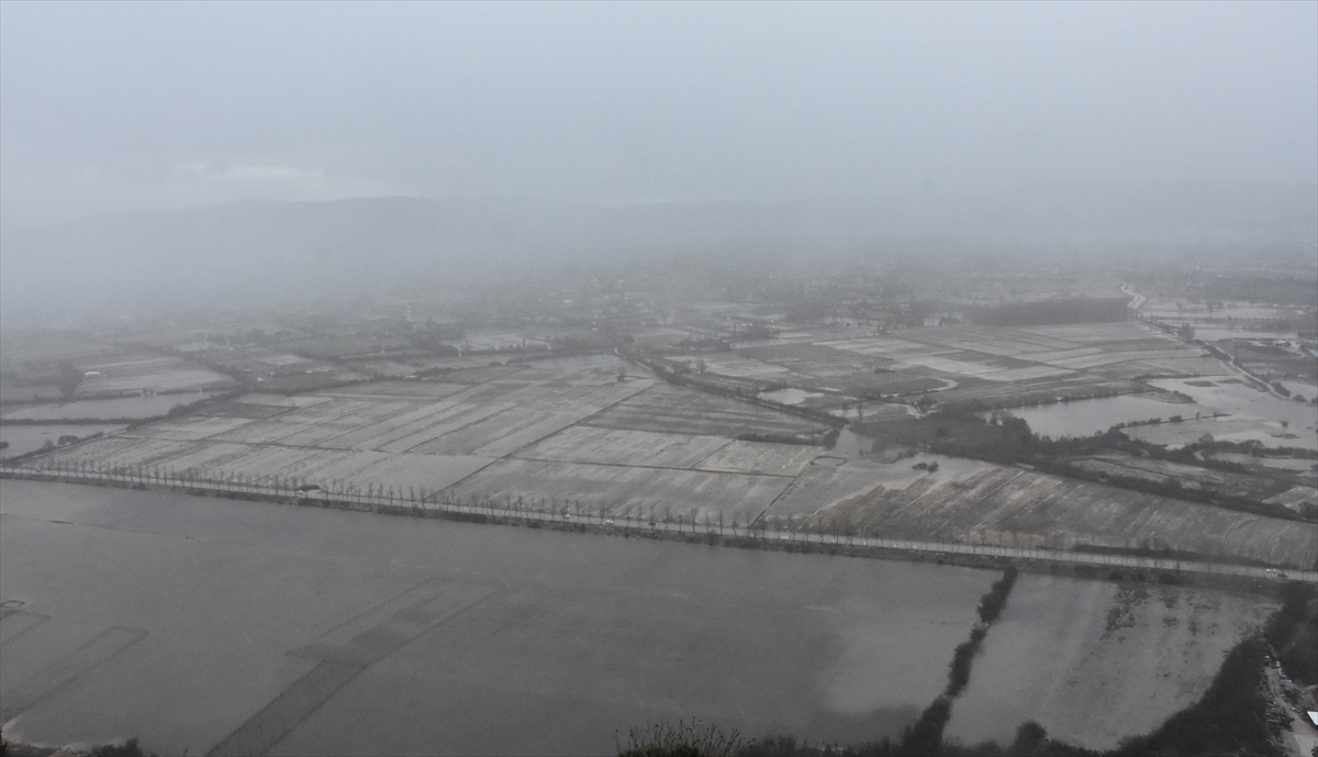 Sağanağın etkili olduğu kent merkezinde ise tarım arazileri suyla kaplandı.