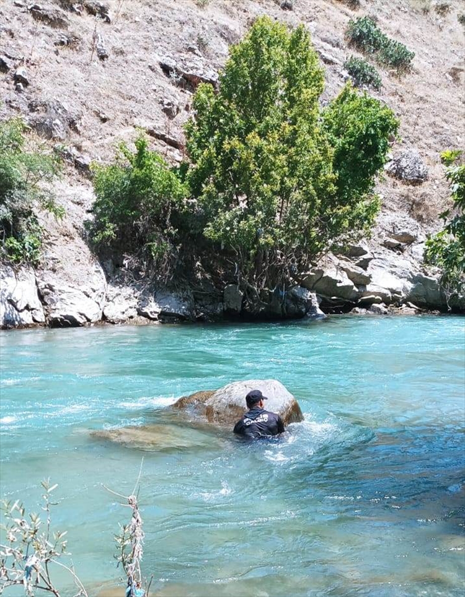 Kayalık ve ağaçlık alanları kontrol eden ekipler, çayda halat bağlanan rafting botlarıyla arama faaliyetini gerçekleştiriyor.