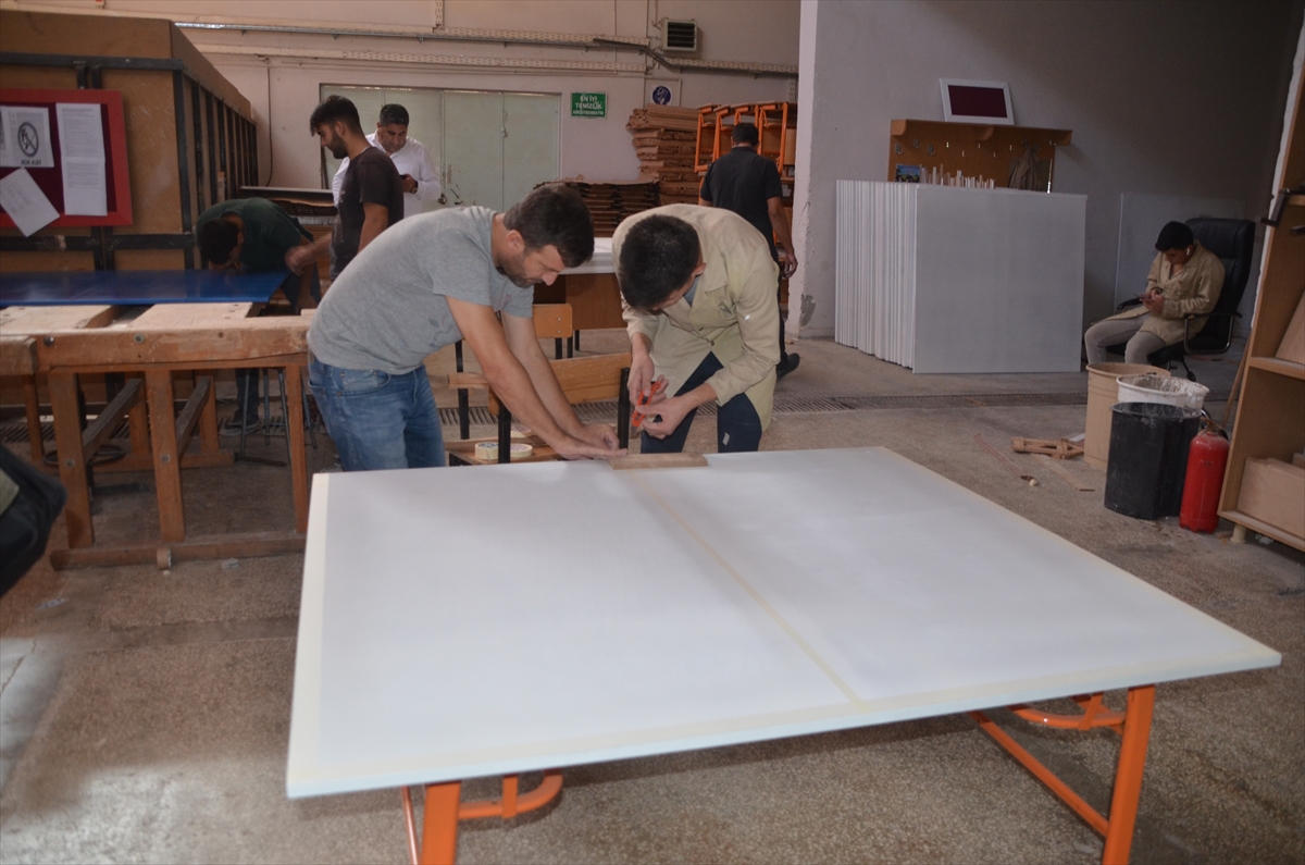 MUŞ (AA) – Muş'ta hayata geçirilen "Sporu Tabana Yayıyoruz" projesi" kapsamında meslek lisesinde görevli öğretmen ve öğrenciler, köy okulları için tenis masası üretiyor.