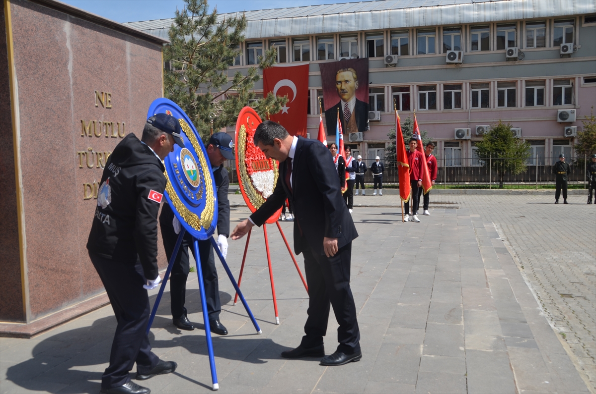 Hükümet Konağı önündeki Atatürk Anıtı'na çelenklerin sunulmasıyla başlayan tören, saygı duruşunda bulunulması ve İstiklal Marşı'nın okunmasıyla devam etti.