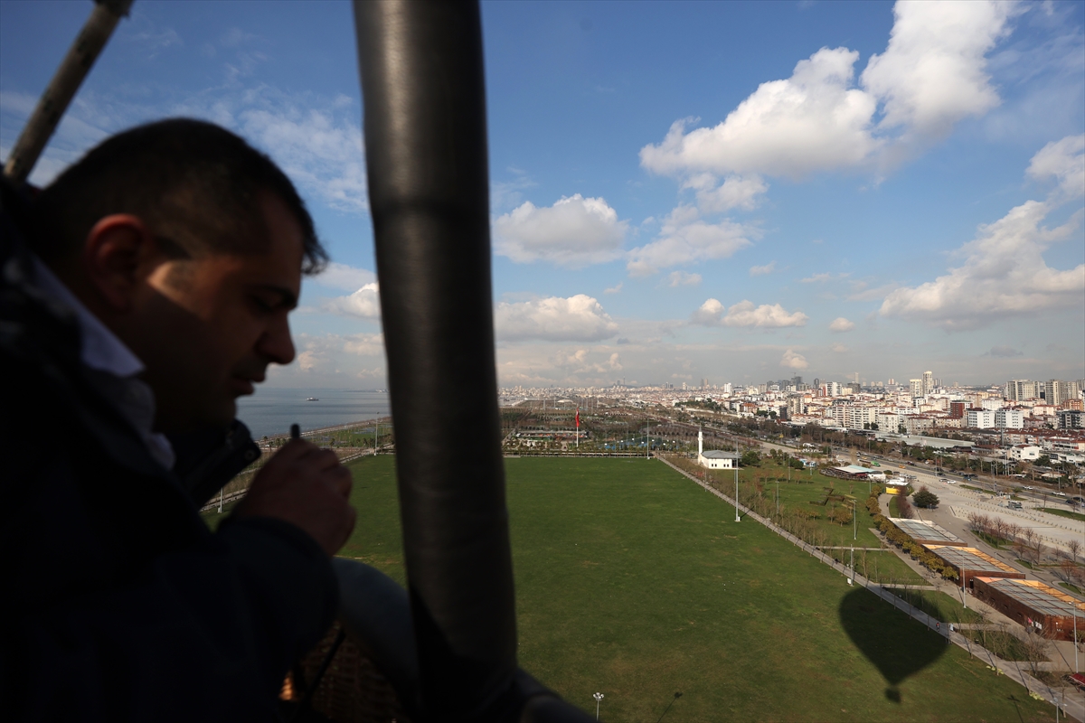 Ziyaretçiler tarafından büyük ilgi gören balon, basın mensuplarının katılımıyla yaklaşık 50 metre yükseğe havalandı.