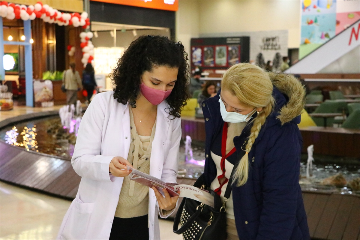 NKÜ Tıp Fakültesi öğrencileri kentteki bir alışveriş merkezinde gerçekleştirilen "meme kanseri farkındalık etkinliği"nde kadınlara broşür dağıtıp, hastalıkla ilgili bilgi verdi.