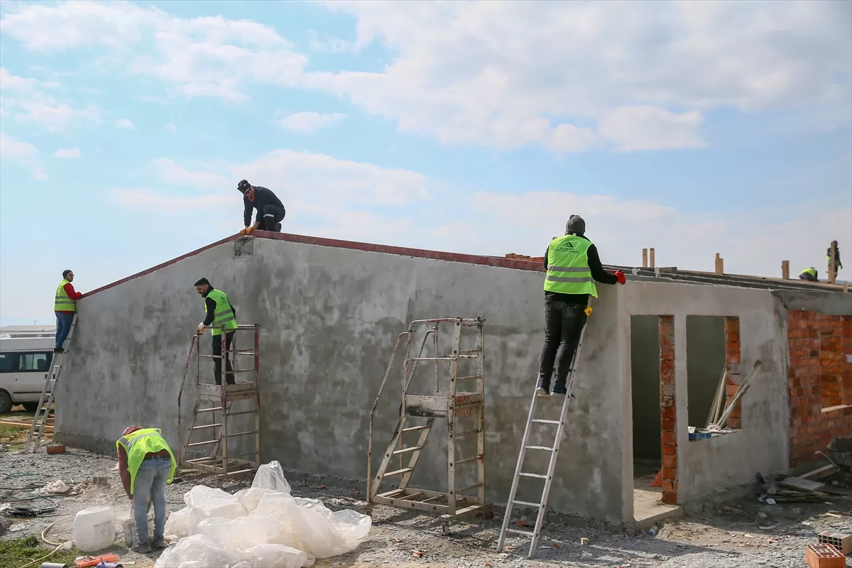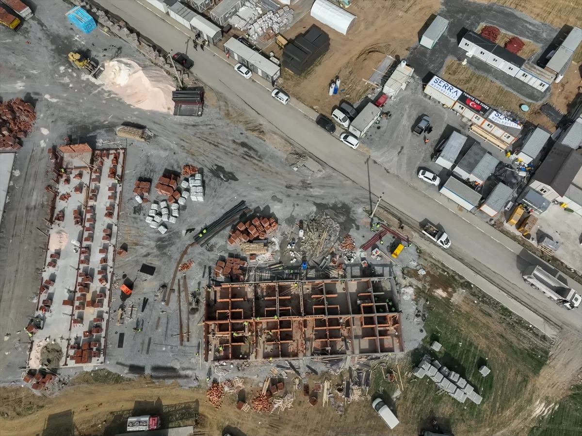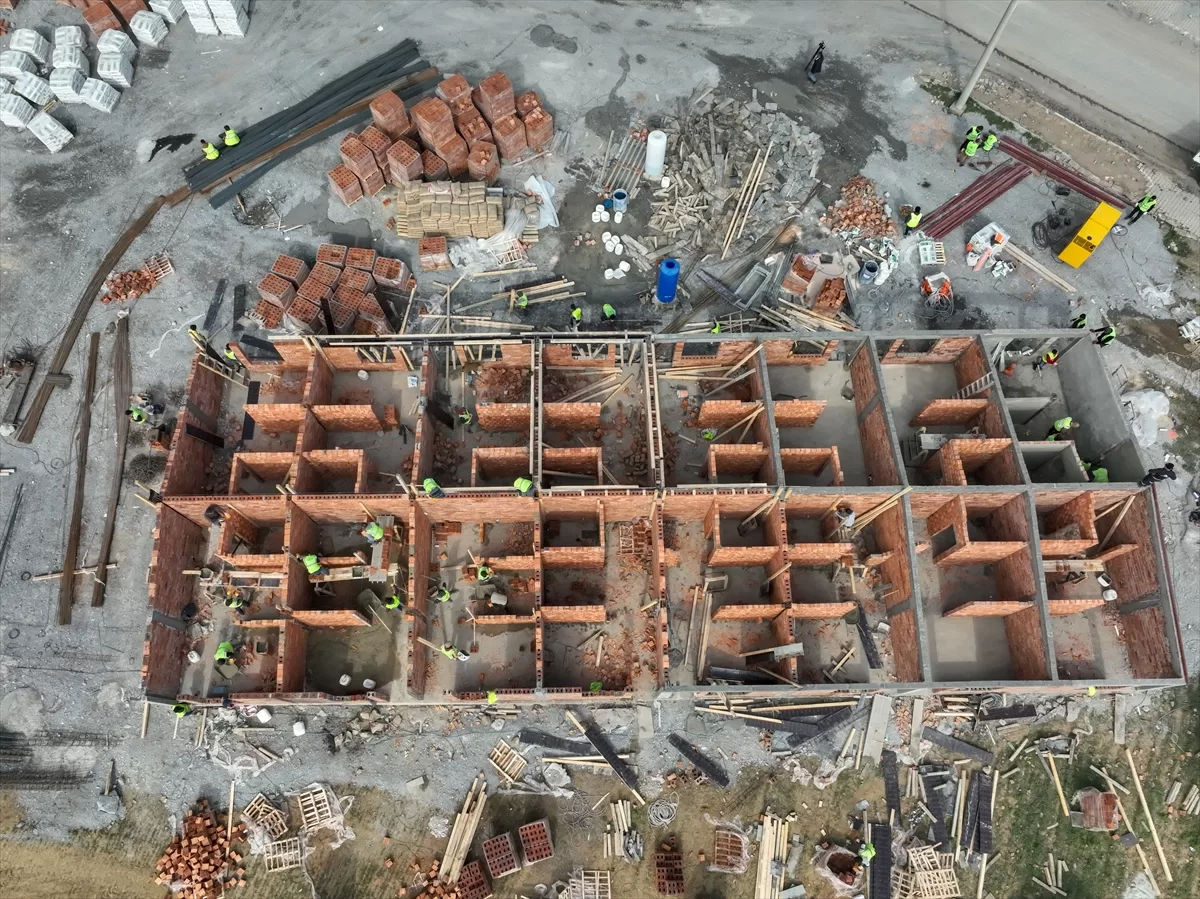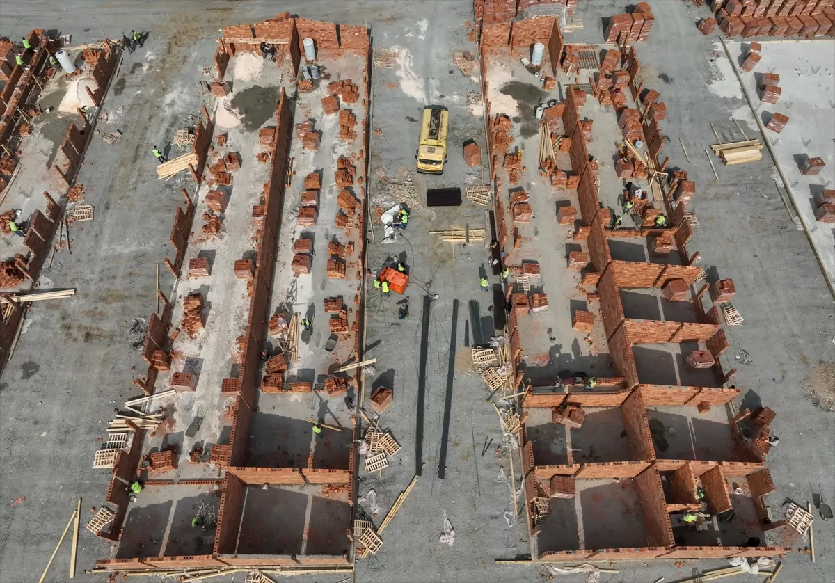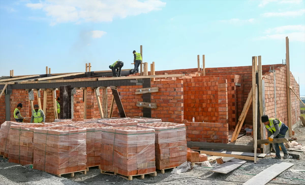Altyapıları yapılan, zemin düzleştirme çalışmaları tamamlanan ve konteynerleri getirilen geçici barınma alanlarında inşaatına başlanan tuğladan evler de yükseliyor.