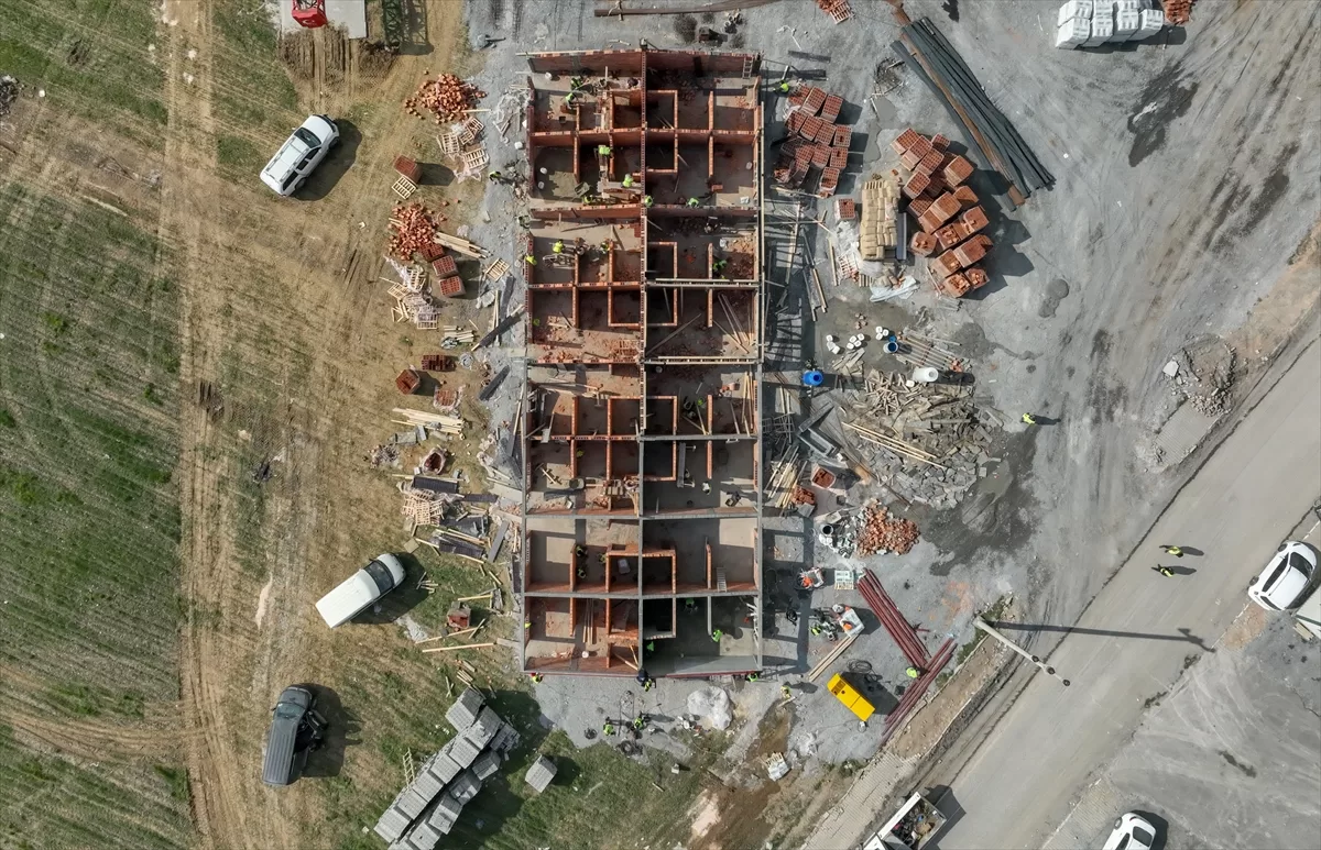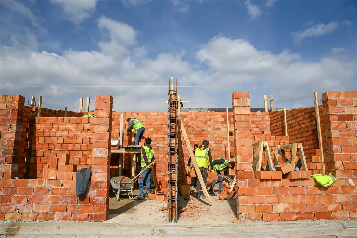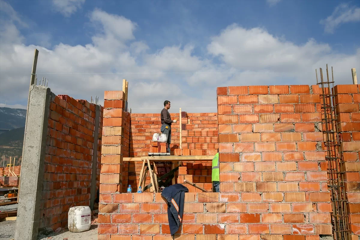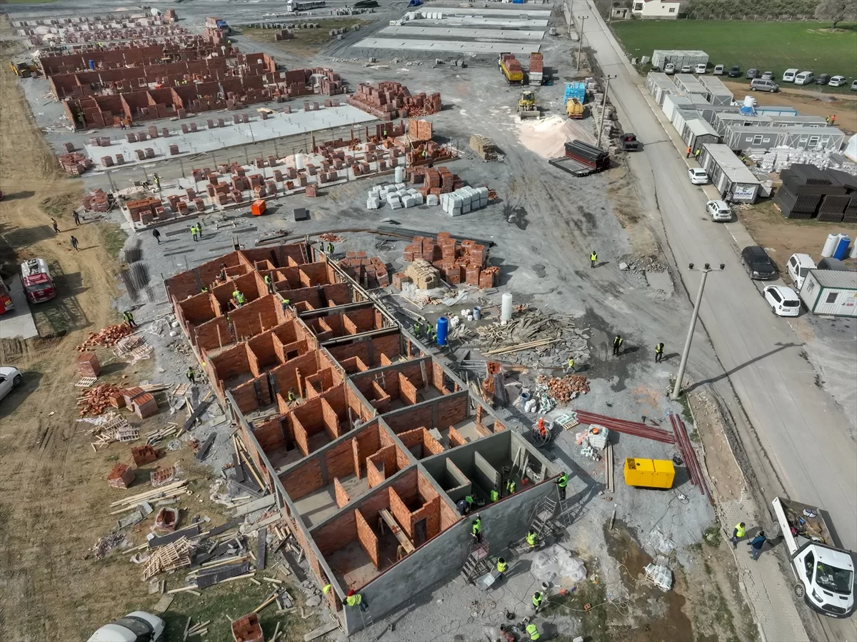 Altyapıları yapılan, zemin düzleştirme çalışmaları tamamlanan ve konteynerleri getirilen geçici barınma alanlarında inşaatına başlanan tuğladan evler de yükseliyor.