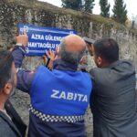 Konuşmaların ardından sokağın eski tabelası sökülerek yerine yenisi takıldı.