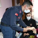 Durumun, Ordu İl Jandarma Komutanlığı'na bildirilmesi üzerine ekipler, Nuriye Ergen'i evinde ziyaret ederek, örmüş olduğu çorapları teslim aldı.