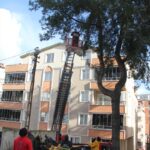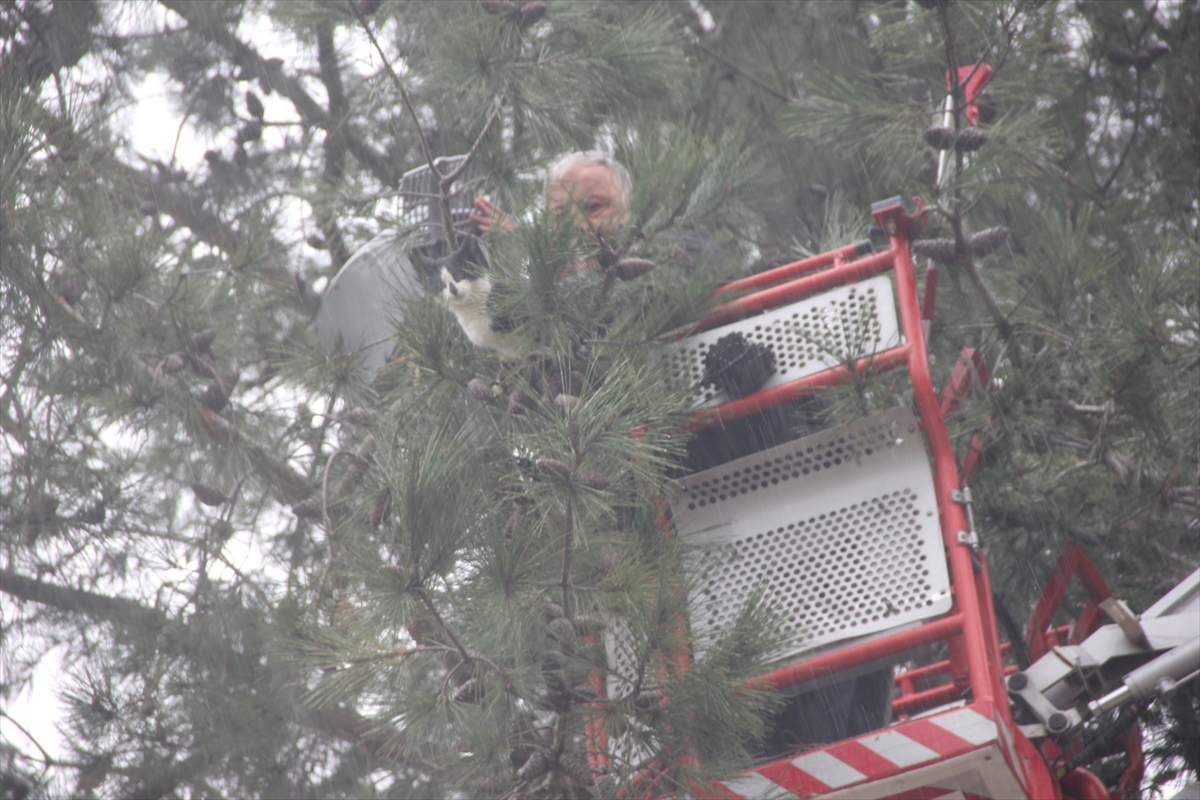 Öte yandan, çalışma sırasında bazı kişilerin, kedinin düşme ihtimaline karşı ağacın altında battaniye açtıkları görüldü.