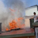 Ekiplerin yaklaşık 3 saatlik çalışması sonucu söndürülen yangın nedeniyle 3 binanın çatısında hasar oluştu.