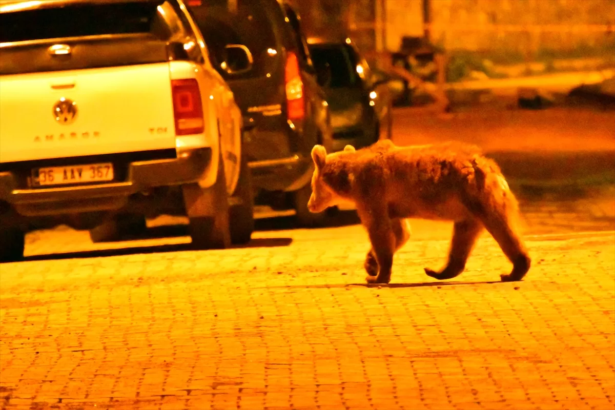 Kars'ta bozayı yavruları geldikleri mahallede çöp konteynerlerinden karınlarını doyurdu